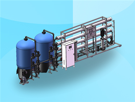 設(shè)備有三個(gè)模塊組成,分別是預(yù)處理模塊、反滲透模塊、深度處理模塊。預(yù)處理模塊去除大顆粒雜質(zhì)、懸浮物以及部分重金屬等有害物質(zhì)。反滲誘模塊在高壓驅(qū)動(dòng)下,借助半滲透膜的選擇截留作用,將水中無(wú)機(jī)離子、細(xì)菌、病毒等有機(jī)物雜質(zhì)去除。
